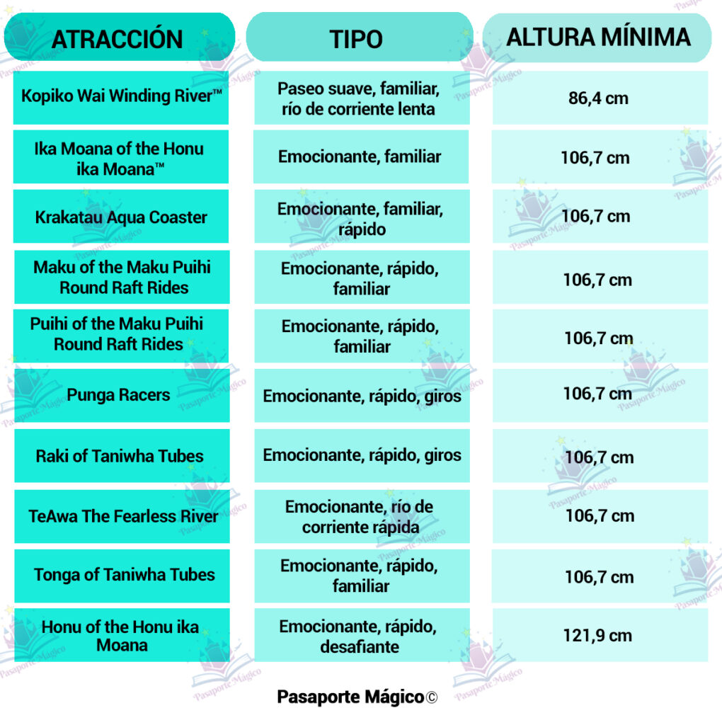Altura mínima para cada atracción: